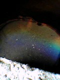 雨水が溜まった階段室の端っこ。油膜に虹色。夕方資料見にいらしたM野さんとお茶する。地震にびっくり。・・・の後は田町の学会へ。
